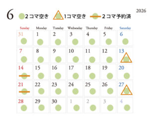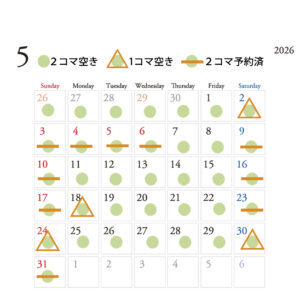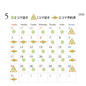 ★アトリエは、13時-15時と、15時-17時の2コマで開いています。空き状況は、右側のカレンダーをご覧ください。2コマ空きあり・1コマ空きあり・予約済、の表示をすることにしました★