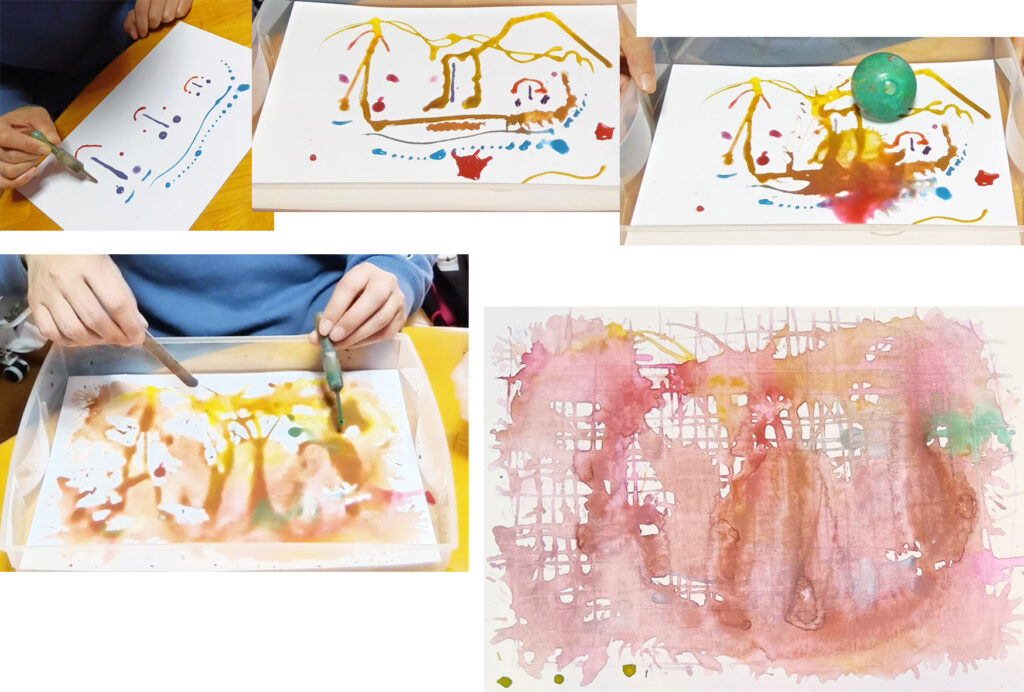 写真-3 Aちゃんの水彩。ボールを転がして、色が広がっていくのです。
