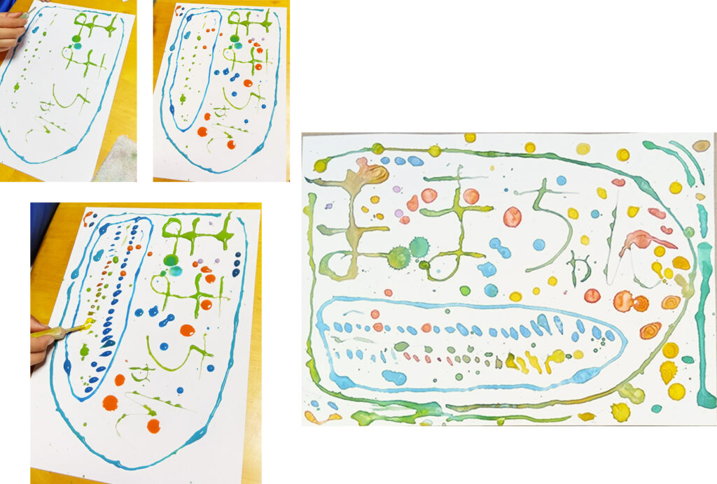 写真-4 Yくんの水彩。スポイトで、丹念に水玉が作られていくのでした。