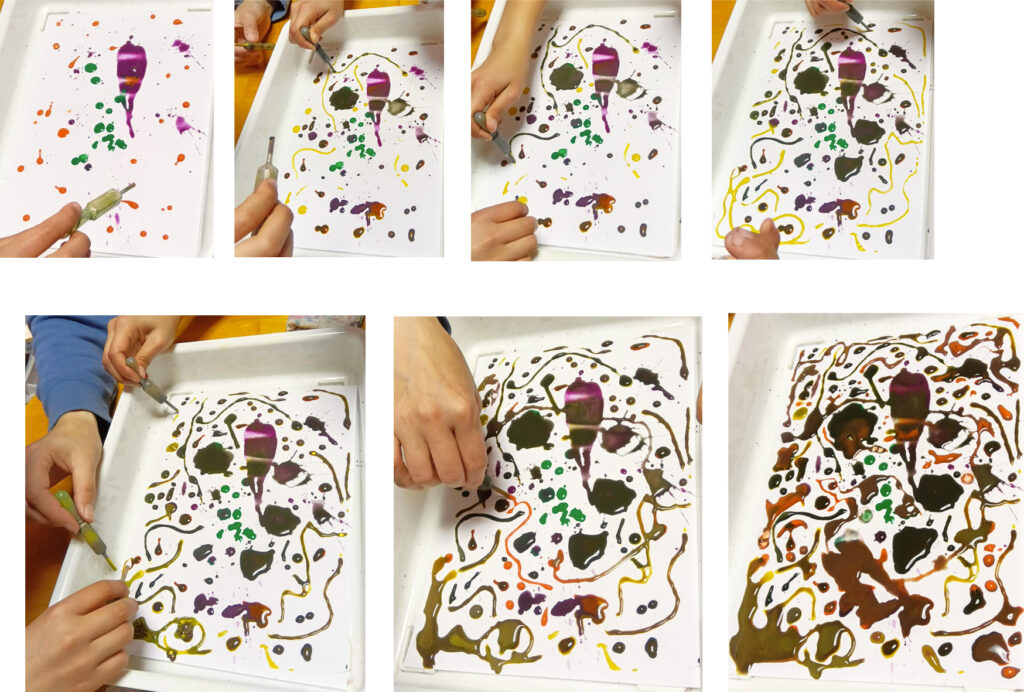 写真-2 3人で描くスポイトの絵、最初から完成まで。