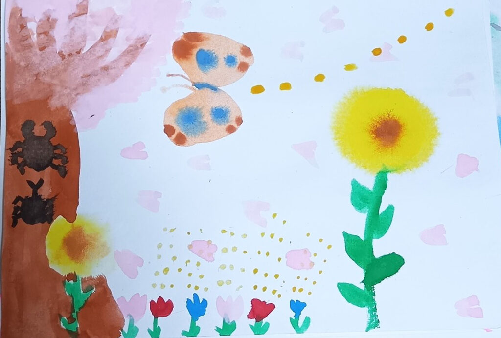 Hちゃん、5回目です。かわりばんこに描く絵、やってみない?うん、いいよ!ということで、始まりました。「画用紙、濡らしていい?」「いいよ、あ、半分は濡らさないで... -