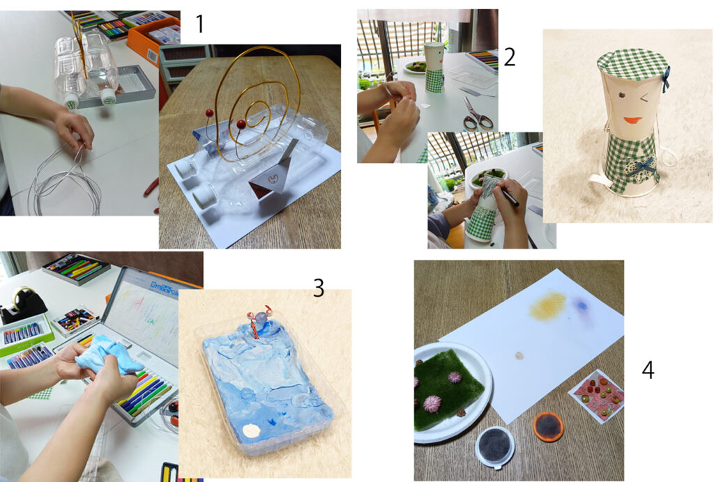 Hちゃん、3回目です。前回の工作の続きから始まります。ペットボトルで作っているカタツムリ。色紙でポケットを折って、貼り付けます。Hちゃんは、おしゃべりが上手で、...