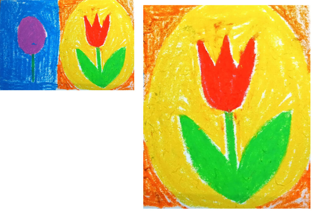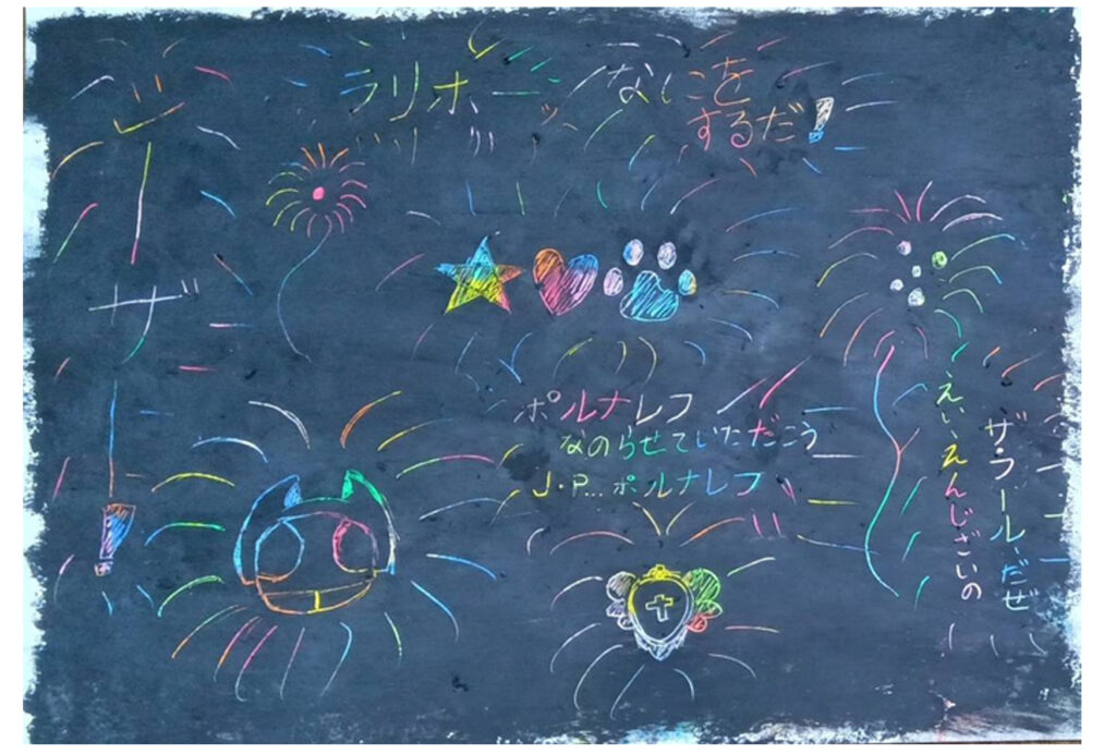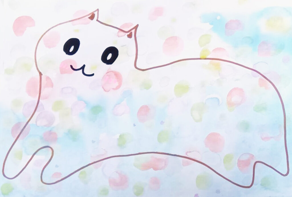 Nちゃん7才、11回目のアトリエです。少し早めだったので、前の時間のお友達と10分くらい同じテーブルで描いてもらいました。パステルの淡い色合いで、木とネコと空を描... -