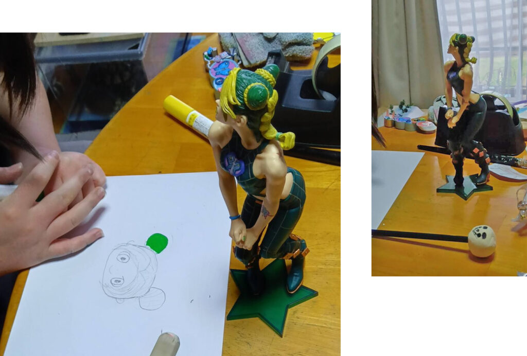 Iちゃん9才、54回目のアトリエです。今日は、ジョジョのフィギュアと一緒にやって来ました。フィギュアは、空条徐倫です。このフィギュアを見てると、どんな気持ち?と...