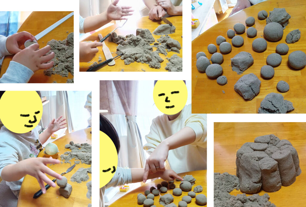 写真-1 キネティックサンド。触りながらおしゃべりが続きます。