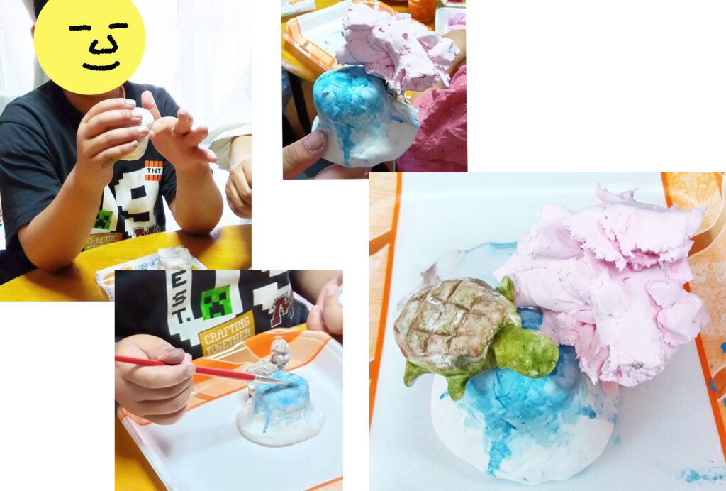 写真-7 Sくん、紙粘土。
