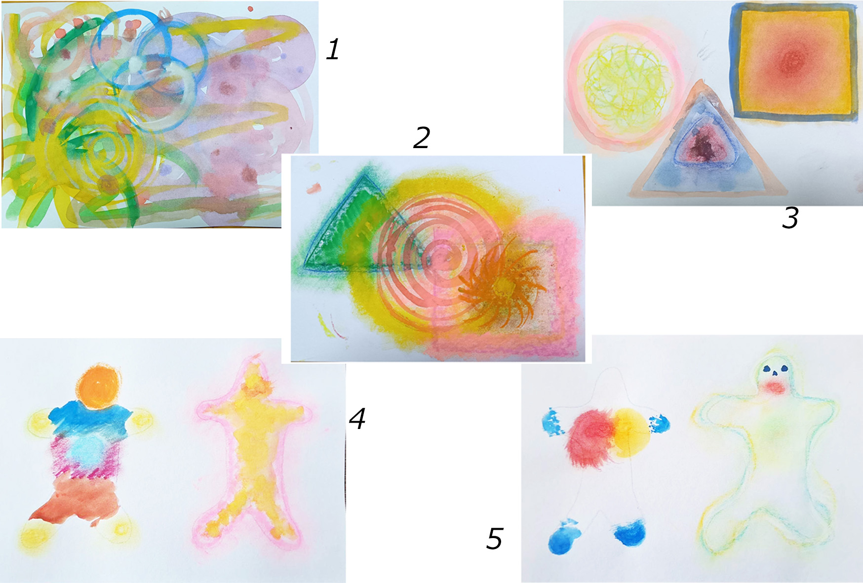 色を味わう面白さ、さらに進めていきます。今回は、〇△□をそれぞれの画面に描いてもらいました。