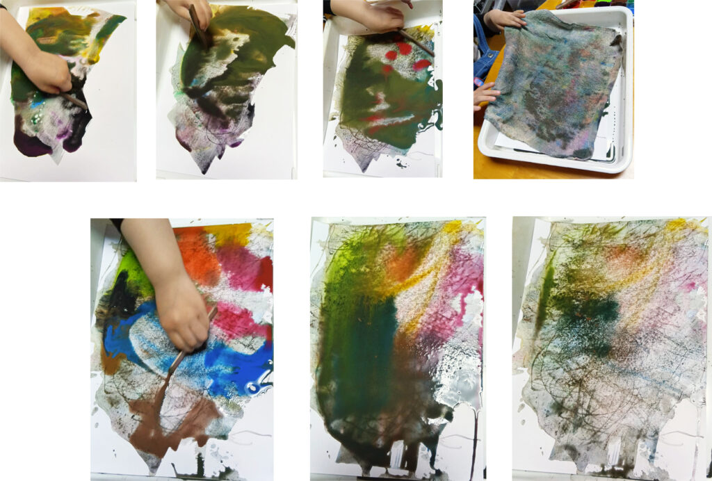 写真-2 2人で描くスポイトの絵、最初から完成まで。