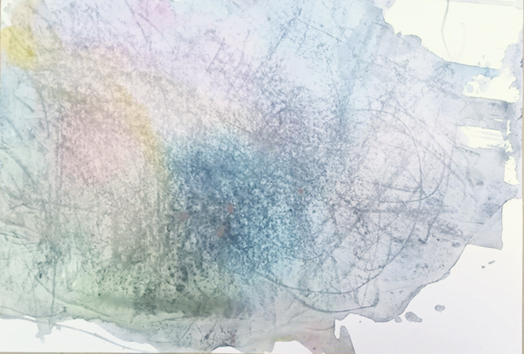 描いている画用紙にふきんをかぶせるのもやってみてます。ふきんを剥がして、一呼吸おいて、また絵の具が足されていきます。絵の具で水遊びしているみたい。でもこの静かな集中は、本当は、もっと深い何かを味わっているような気がします。手が止まって、サバサバした表情です。