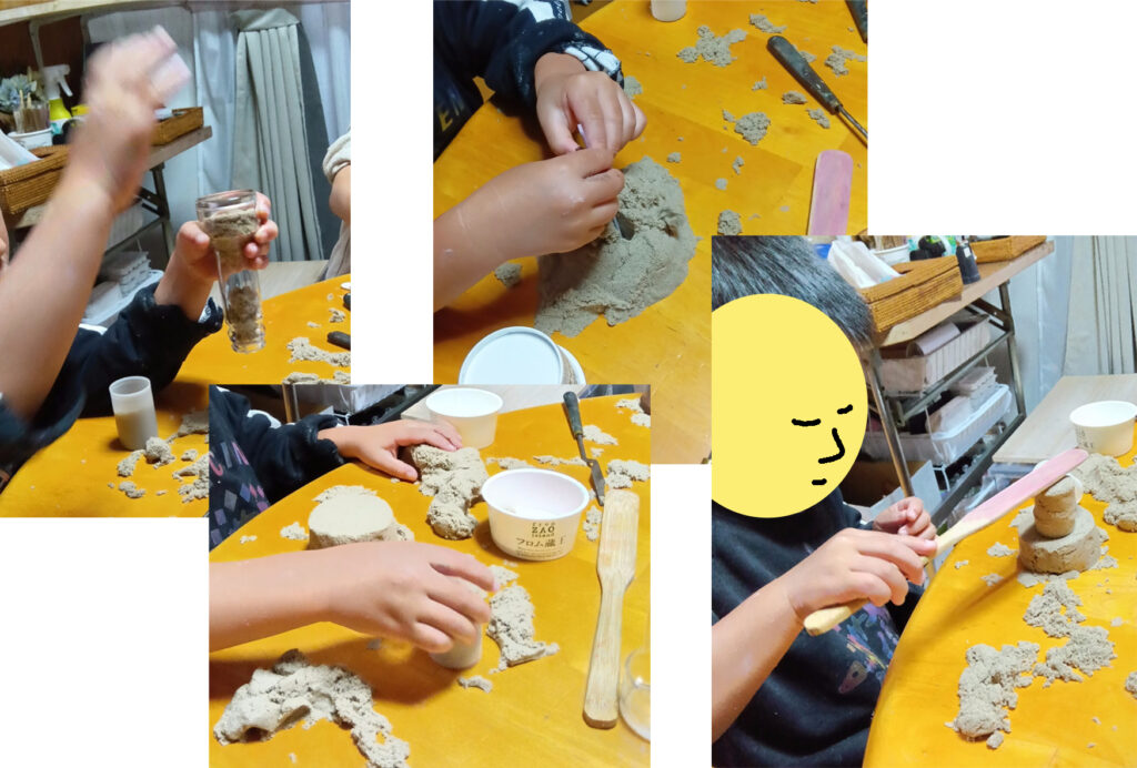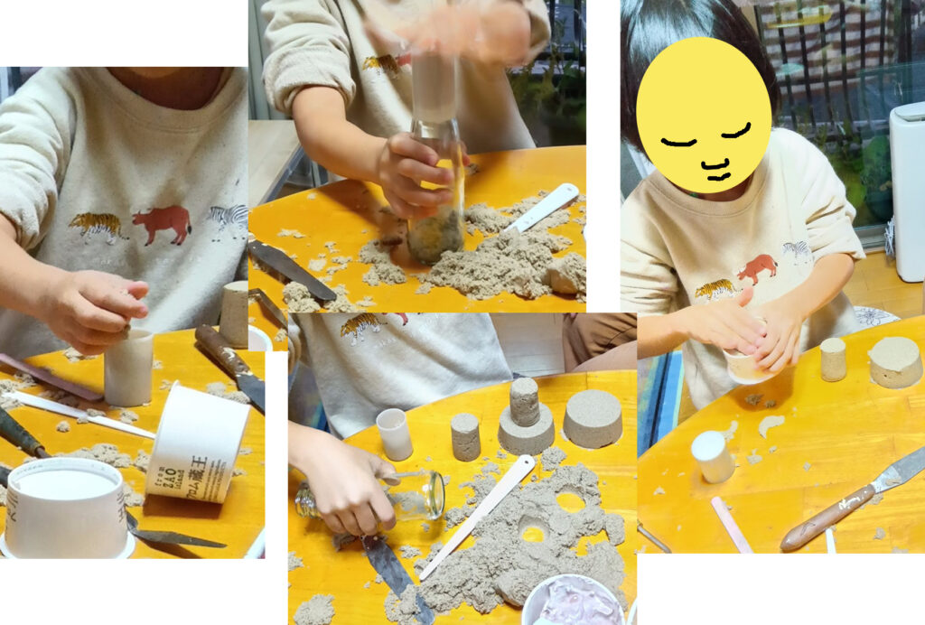 写真-6 キネティックサンド、きちんとした形が出来るのが不思議で楽しいのです。