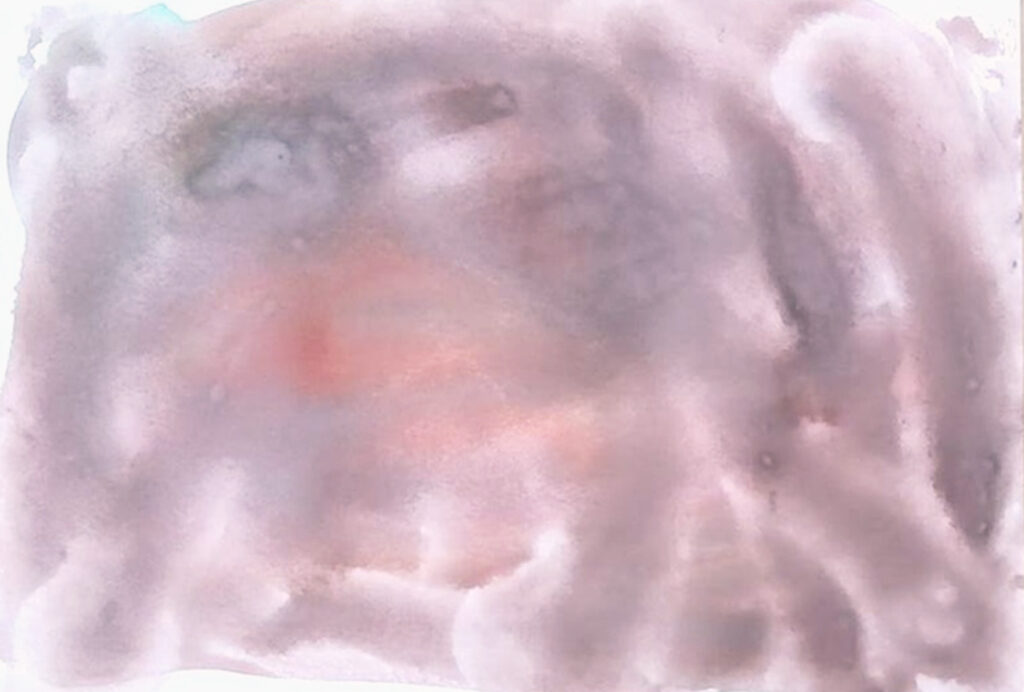 写真-4 筆とボールで描く水彩、最初から完成まで。