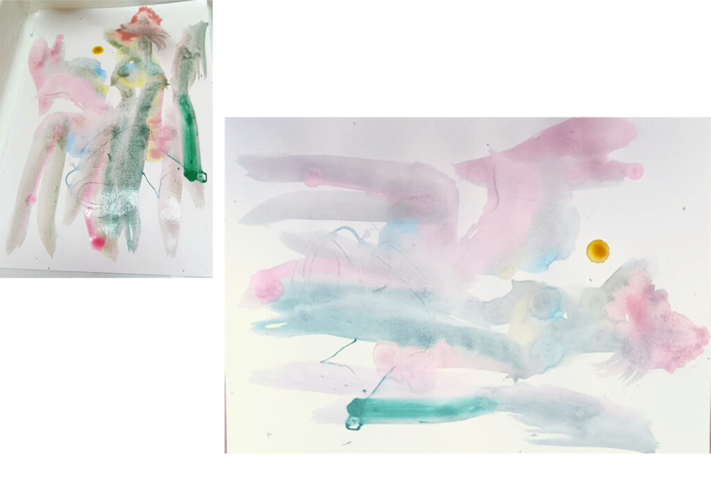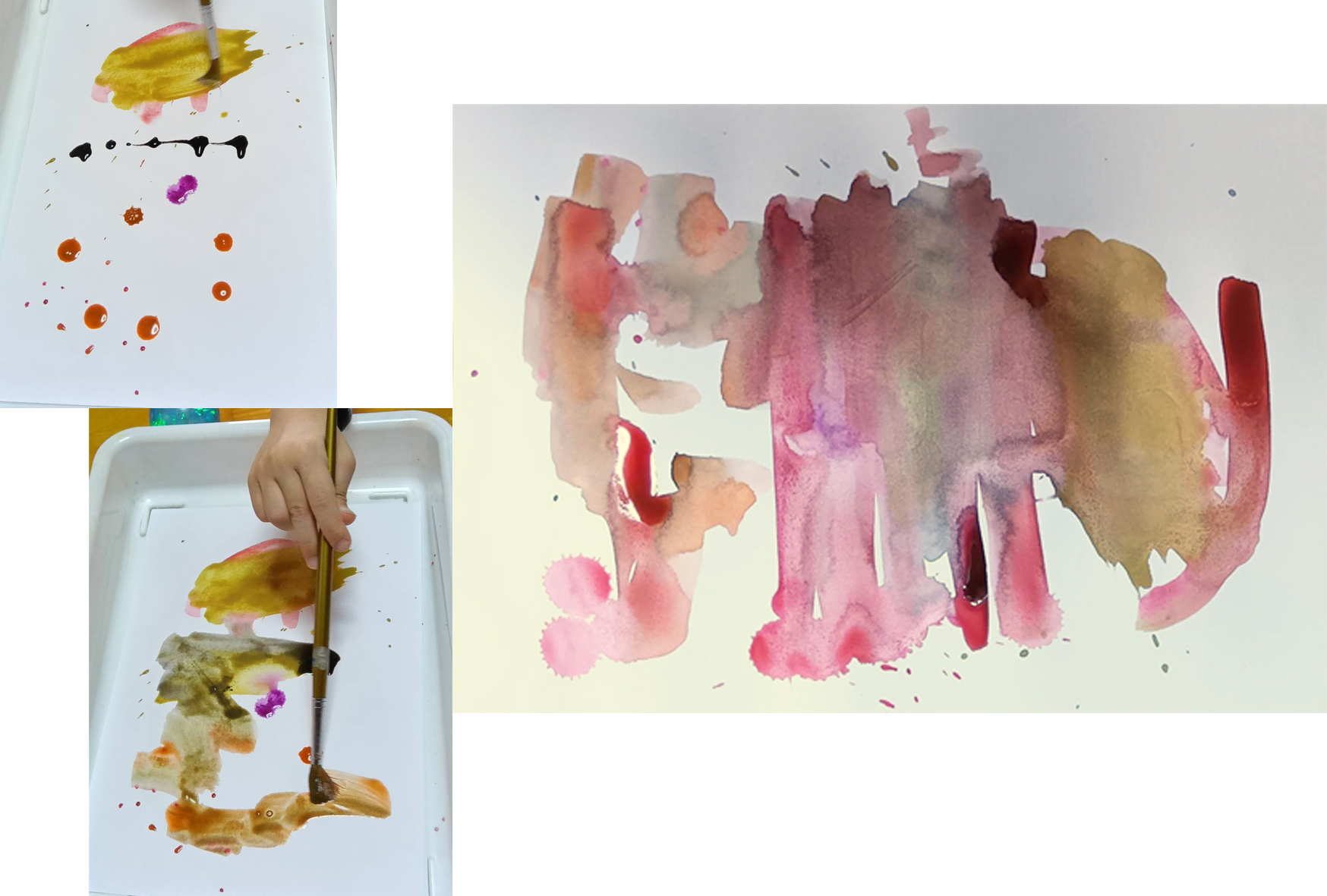 THくんは、サクサク始まります。お母さんもやってみます。TDくんも始めたですが、途中から、絵の具の並んでいるパレットそのもので遊び始めるのでした。やりたい遊びを💗やってもらいます。