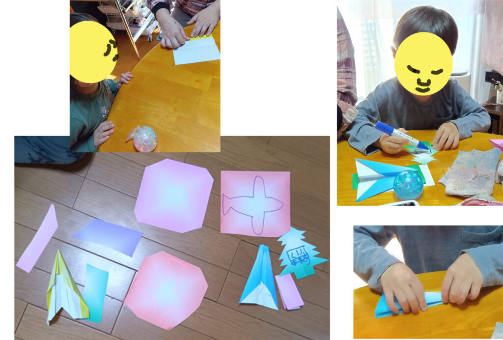 写真-4 いつも遊んでいるおりがみなので、サクサク遊んでいます。この柔らかさと大きさが使いやすいのかな。