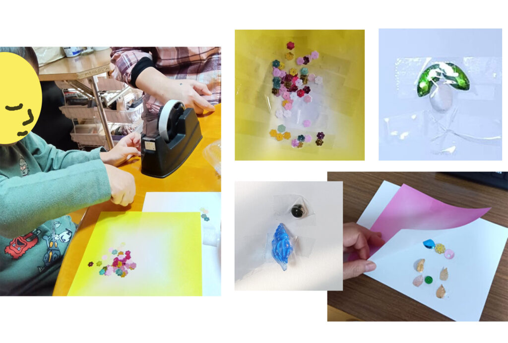 写真-5 スパンコールをセロテープで貼ってます。鮮やかな色がきれいです💗