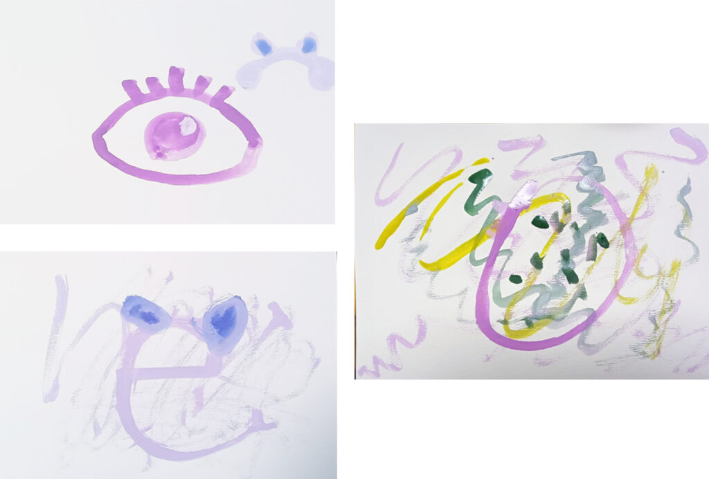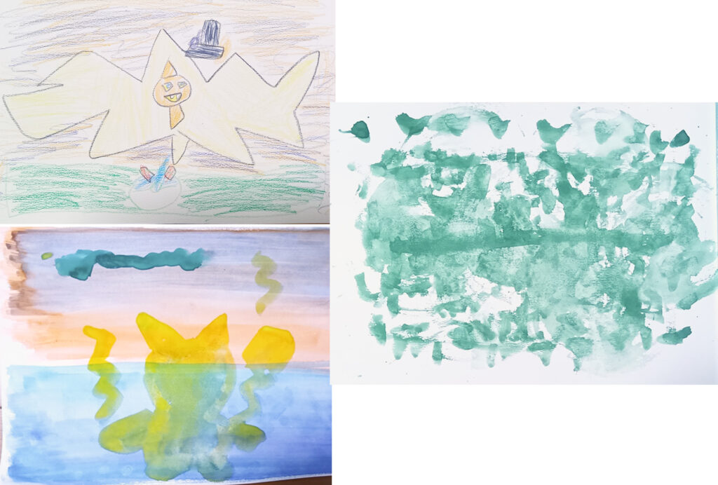写真-3 Tくんの絵、3枚。全体の雰囲気を味わっている感じです。