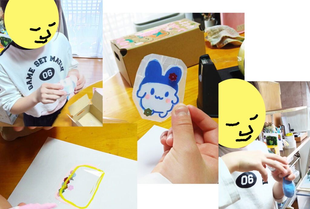 写真-4 シールを作りました。イマイチなのは却下されてます。風船に詰めた紙粘土のスクィーズも却下されました。イメージは譲らない💗探求する💗