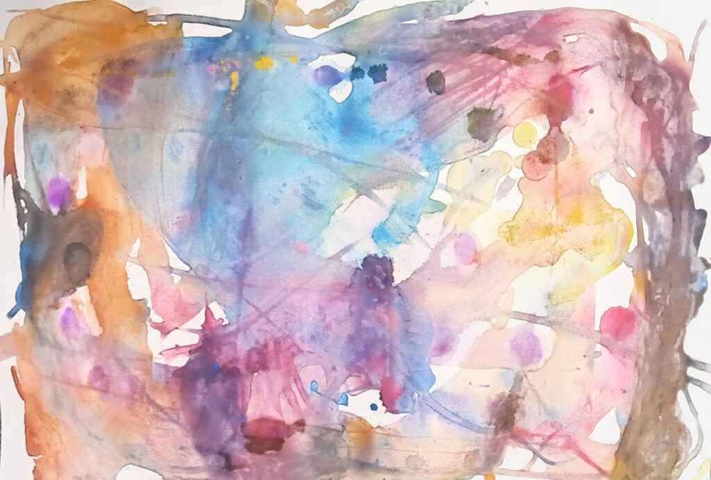 みんなで1枚の絵を描いてみようと思います。これは、絵を描きながら、色を遊んで、気持ちのリラックスしていく遊びです。