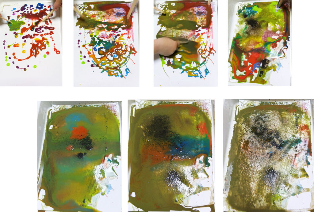 写真-2 2人で描くスポイトの絵、1枚目、最初から完成まで。