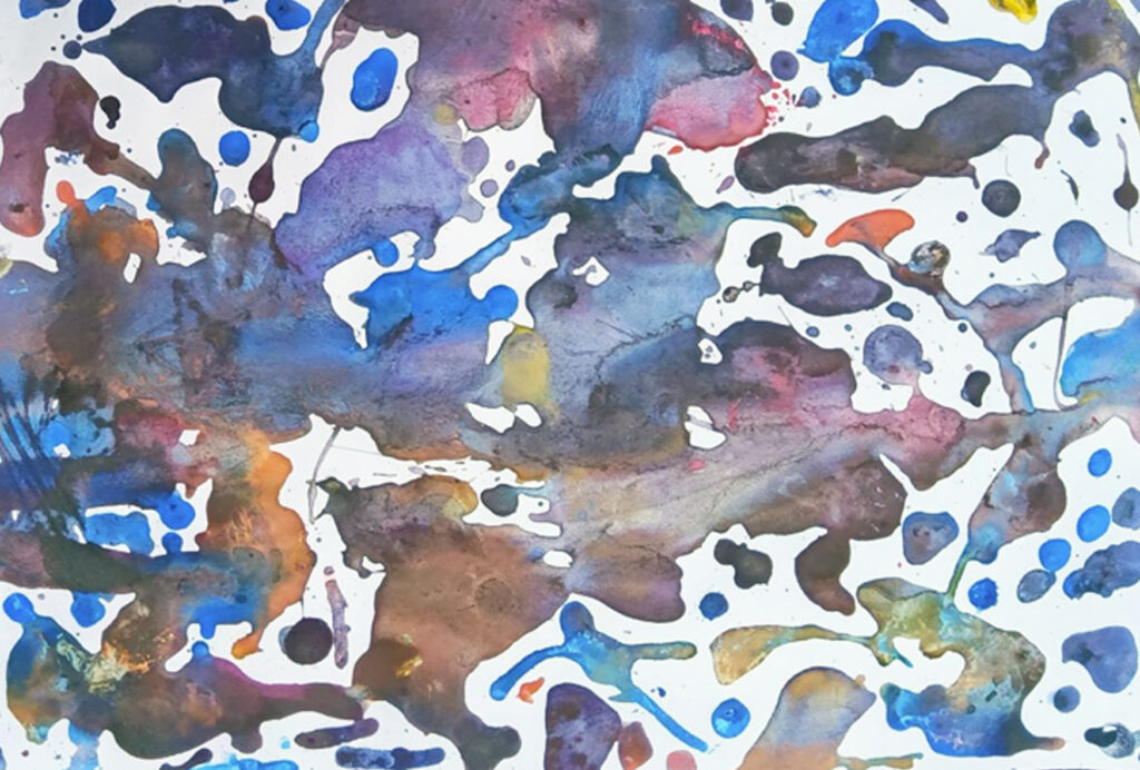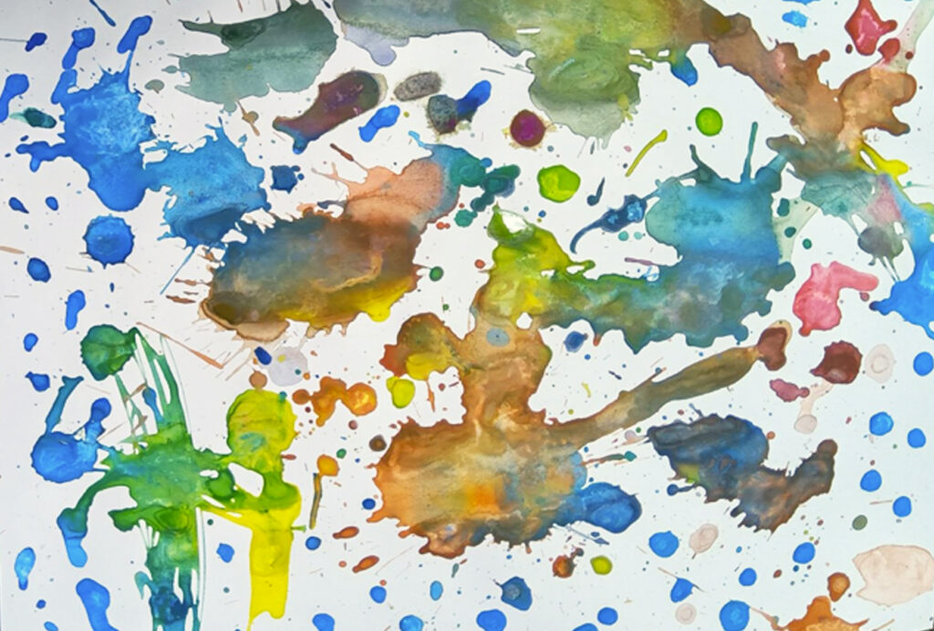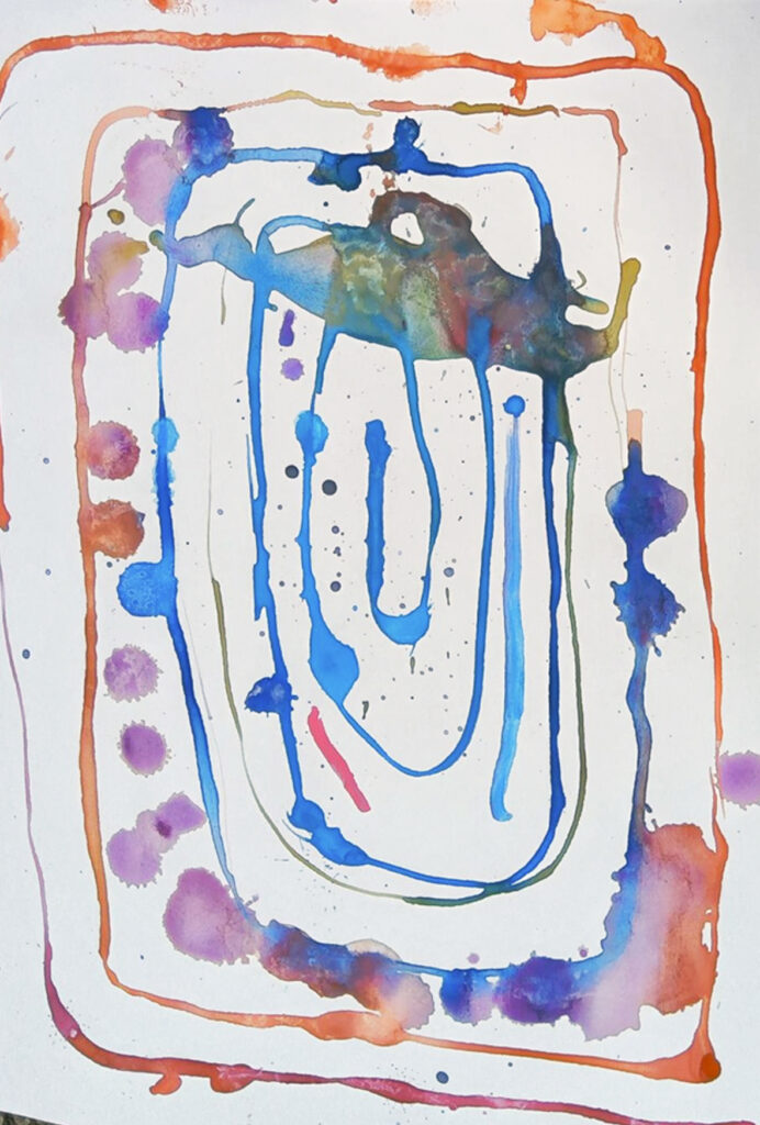 Aちゃん9才、Yくん7才、3回目のアトリエです。まずは、プニョプニョボールで遊んでもらいます。2人で、くっつけたり重ねたりいろんな遊び方が始まります。そのうち、Yくんが絵の具で遊び始めたので、水彩を始めることします。