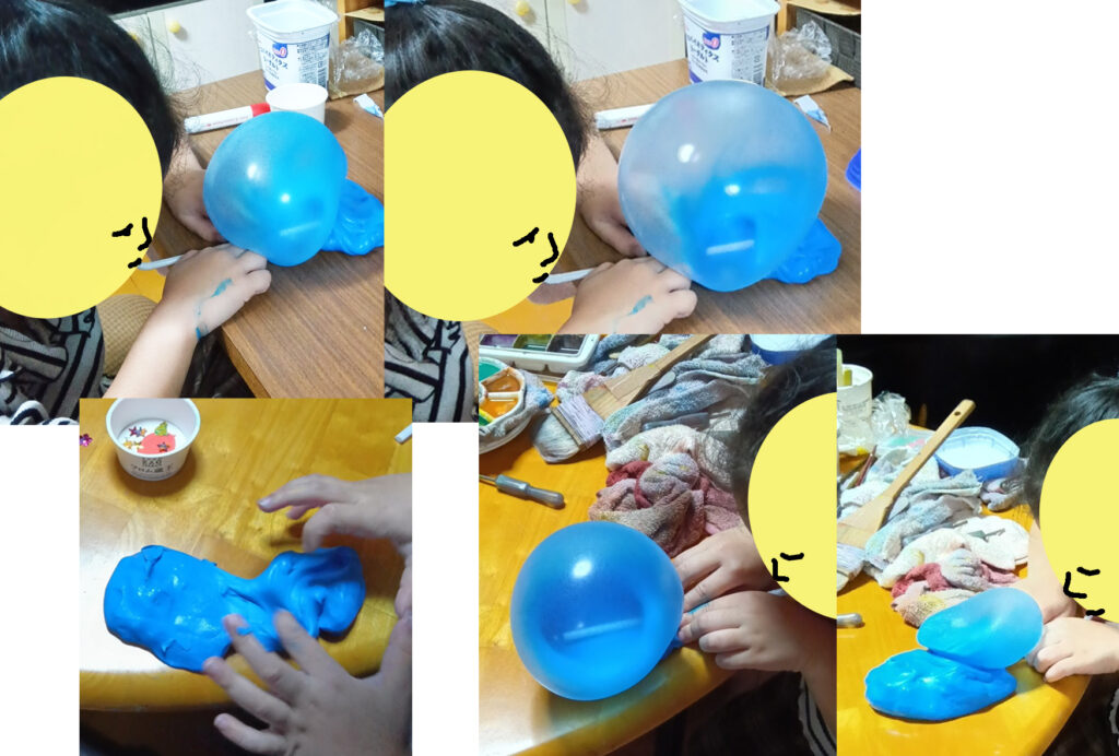 写真-3 スライムの風船、ストローの具合をどんどんサクサク工夫する集中💗